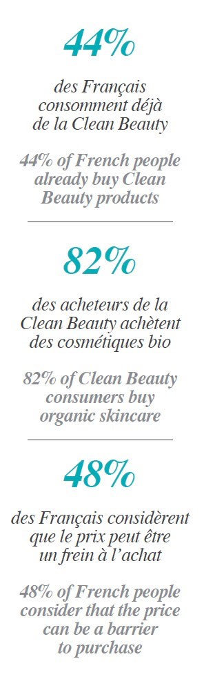En effet, l’étude révèle que pour 97% des Français la santé est la principale motivation pour passer à la Clean Beauty. En outre, ce sont dorénavant la composition et les ingrédients des produits qui priment dans l’acte d’achat : 55% des Français font leurs achats de cosmétiques naturels, bio et vegan en fonction de la composition du produit. De plus, c’est quasiment un Français sur deux qui portent une attention toute particulière aux labels apposés sur les cosmétiques (bio, écoresponsables, d’origine naturelle…).