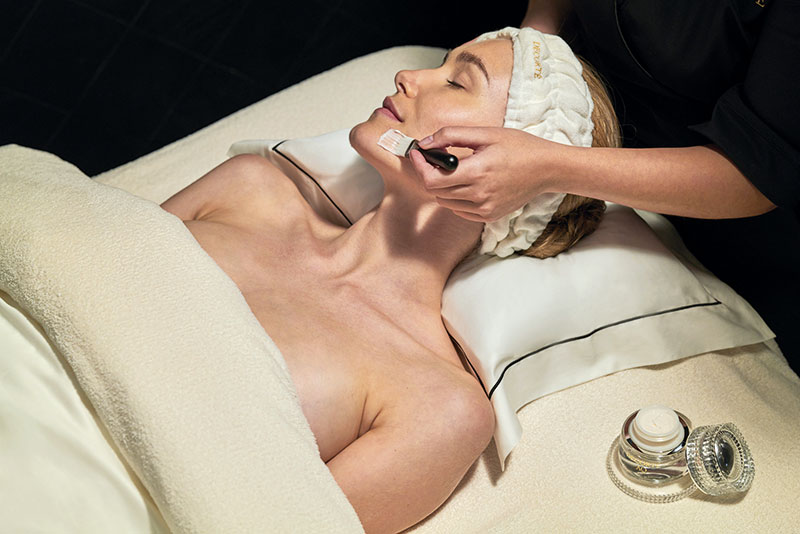 La carte est volontairement courte, « un choix pour proposer du sur-mesure », précise-t-elle. Le Rituel Rajeunissant et Raffermissant de 90 minutes est le soin signature de l’établissement. Son protocole repose sur le layering japonais : double nettoyage, double hydratation, massage profond du visage, de la nuque, des épaules et du décolleté, puis double masque. « Ce soin signature repose sur un travail en profondeur et une gestuelle précise, révélant une identité experte, scientifique et maîtrisée. Un luxe discret, sans théâtralisation excessive », résume-t-elle.